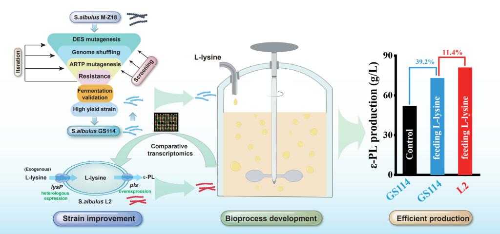 近期,我校伟德国际1946官方网张建华研究员团队陈旭升教授课题组在ε-聚赖氨酸高效生产方面取得重要进展,研究成果“Combinatorial strain improvement and bioprocess development for efficient production of ε-poly-L-lysine in Streptomyces albulus”正式发表于Bioresource Technology (IF =/info/1021/ /9.7) (https://doi.org/10.1016/j.biortech.2024.131123)。