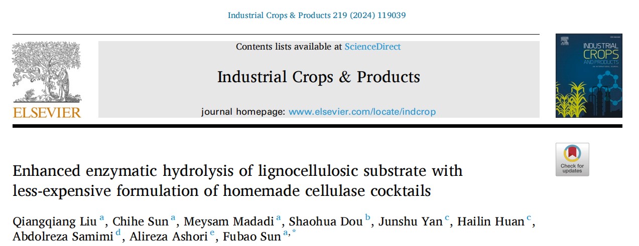 近期,我校伟德国际1946官方网生物资源与生物炼制研究团队在木质纤维素生物质酶法水解产糖方面取得重要进展,研究成果“Enhanced enzymatic hydrolysis of lignocellulosic substrate with less-expensive formulation of homemade cellulase cocktails”正式发表于Industrial Crops & Products(一区, Top, IF 5.6)。
