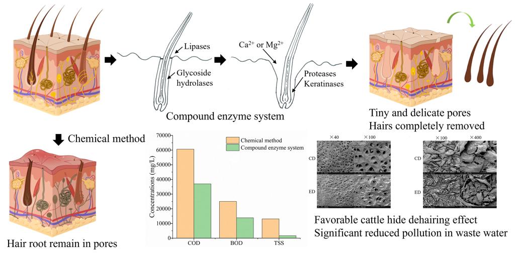 近期,我校伟德国际1946官方网李崎教授团队在皮革环保脱毛方面取得重要进展,研究成果“Significant alleviation of water pollution in leather dehairing through the construction and application of an eco-friendly compound enzyme system”正式发表于Journal of Environmental Chemical Engineering (IF =/info/1021/ /7.4) (https://doi.org/10.1016/j.jece.2025.115520)。
