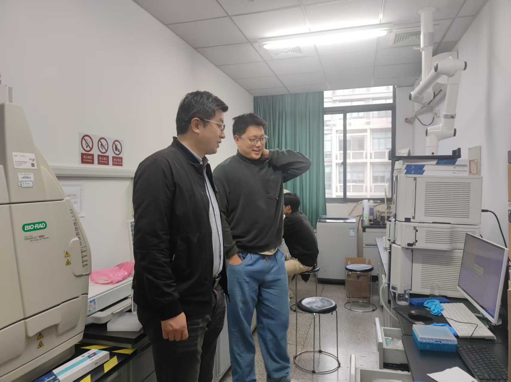 在学院楼、未来食品科学中心、国工、国重实验室,辅导员老师与同学们亲切交谈,询问他们的学习科研情况、职业发展、生活需求,并就同学们关心的问题做进一步了解。在交流过程中,同学们热情地介绍自己的研究方向、兴趣爱好,感谢学院对大家的关注关怀。老师们在深入了解了同学们的学习科研和生活情况后,鼓励同学们勇于探索未知,迎接科研上的挑战,也要积极锻炼身体、发展个人特长,并表示学院将一直作为同学们坚实的后盾,为大家提供更好的学习、科研环境,持续关心大家的成长。