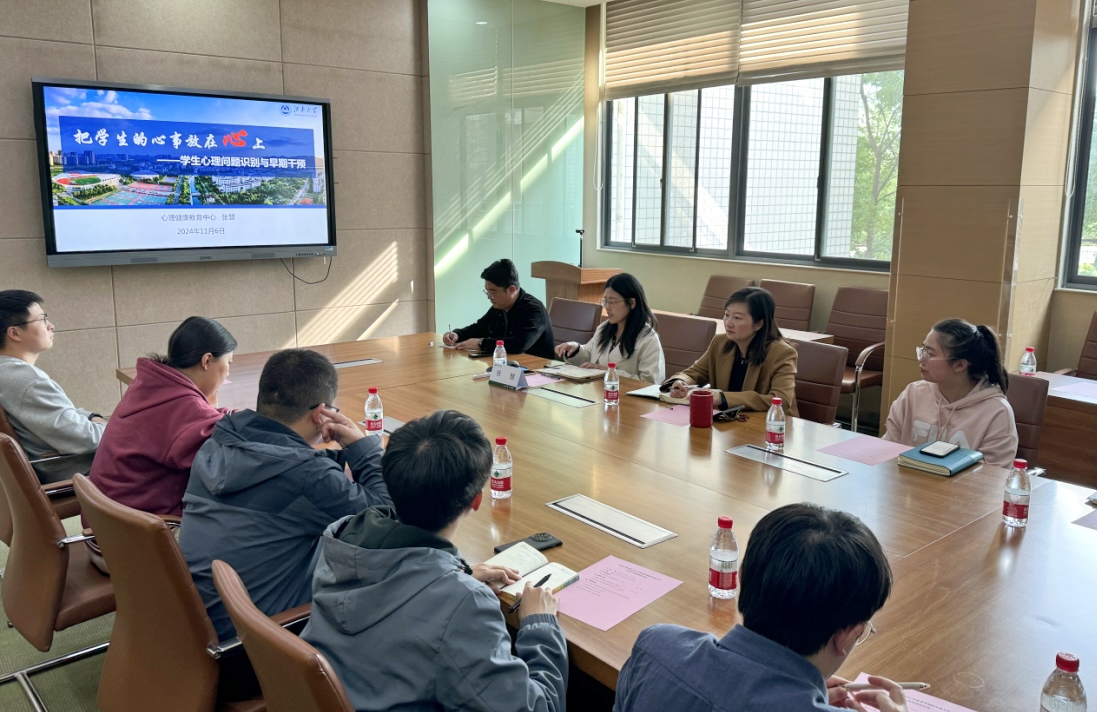 林丹强调守护大学生心理健康是学生工作的红线、底线,学院将进一步夯实四级心理危机干预工作网络。同时提出班主任辅导员要积极参与学生成长的各个重要节点,引导学生正确看待心理困惑。进一步提升工作协同与联动水平,形成“心育”合力,不断推动心理健康工作提质增效,守护学生身心健康成长。