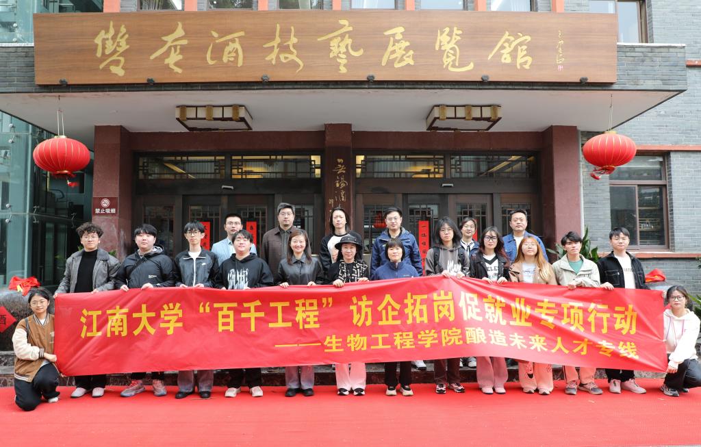 3月27日下午,伟德国际1946官方网党委副书记兼副院长林丹带队来到无锡玉祁酒业有限公司开展访企拓岗交流活动,学院学工办主任兼团委书记周春江,辅导员张同舟、韩俊,大三和大四酿酒工程专业学生代表一同参加了活动。