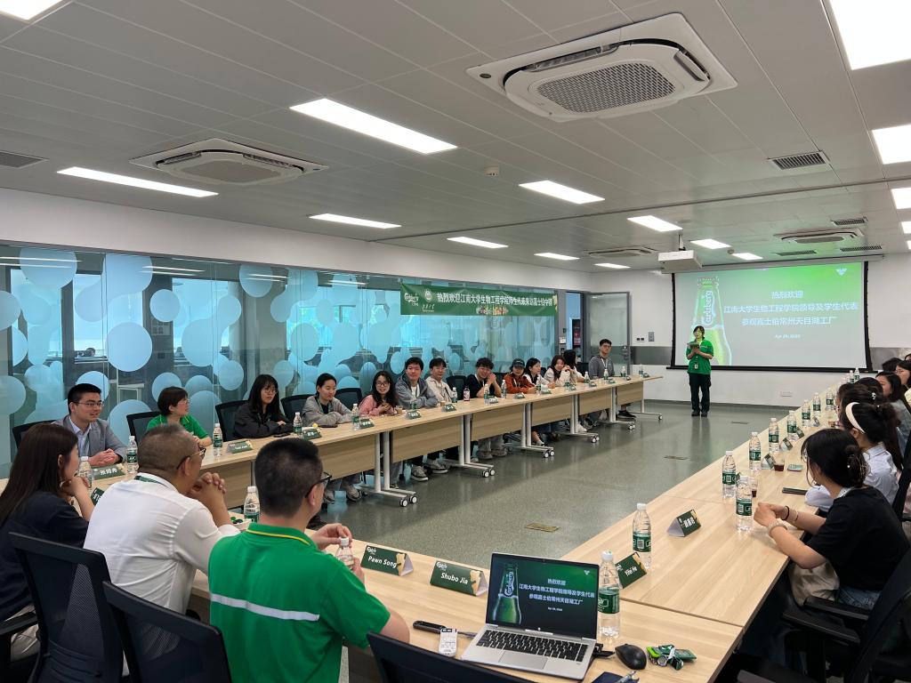 林丹在交流中向企业领导介绍了学校和学院近年来在学科发展、人才培养、社会服务等方面取得的成绩。她表示,嘉士伯中国作为伟德国际1946官方网理事会常务理事单位,与学院长期保持着紧密的合作关系,公司在人才培养、实习就业等方面给予大力支持。郑飞云也深情回顾了多年来与嘉士伯中国及其常州天目湖酒厂交流、合作的经历。他还勉励在场同学要珍惜韶华,脚踏实地,注重理论与实践相结合,发扬生工精神,努力提升自己的综合素质,争做有用之才。